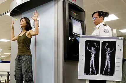 美国、欧盟的一些机场就配有人体扫描安检仪。一些人体扫描安检仪采用的是微波反射技术,它能用高频无线电波扫描人体表面,制作图像。大家可以观摩一下微波反射技术的效果——