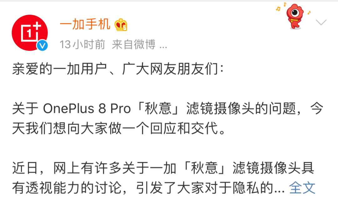 但不管怎么说,它还是会引发各种不适。5月19日凌晨,一加手机在微博上致歉,并表示暂停该滤镜。