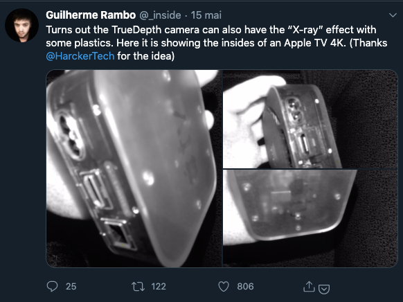 虽然在普通玩家手里,这种红外摄像头只能用于扫脸,但也有高级玩家破解了它,并用它拍到了塑料外壳下的图案——