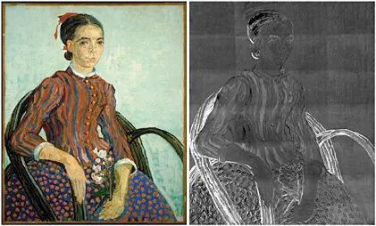 由于大多数绘画颜料对红外线透明,梵高对画作 La Mousmé (1888)在红外线(1.2微米和1.6微米的叠加)照射下几乎变成了全黑。