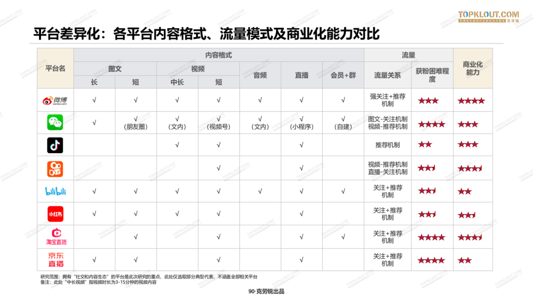 事实上,克劳锐对每一个平台,都做出了详尽的分析,其中包括平台的流量分发机制、商业变现能力、扶持政策,以及平台运营、文化等等特性,并对平台未来发展趋势做出预测。
