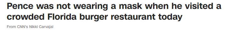 CNN:今天参观佛罗里达州一家拥挤的汉堡店,彭斯没戴口罩
