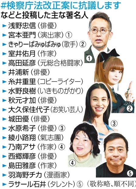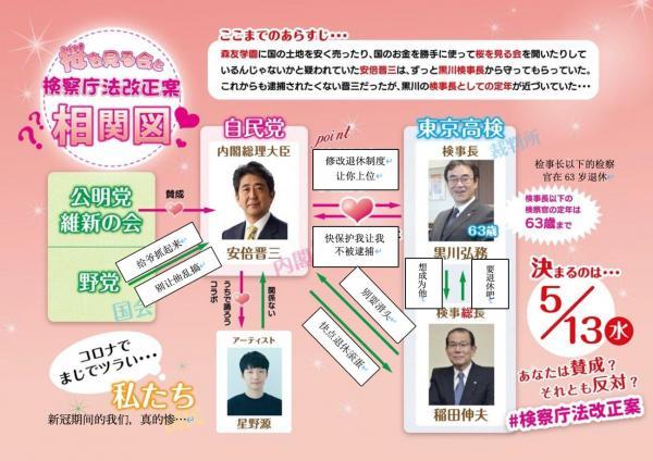 5月8日,日本推特上一个名为“抗议检察厅法改正案”的话题悄悄出现,并在推特的热门排行榜上不停地向上攀登。9日,包括日本知名歌手竹村桐子(日语叫做きゃりーぱみゅぱみゅ的那位)、生物股长成员水野良树、艺人水原希子等在内的众多名人也参与转发并讨论。截至10日,已有500万人转发该话题。