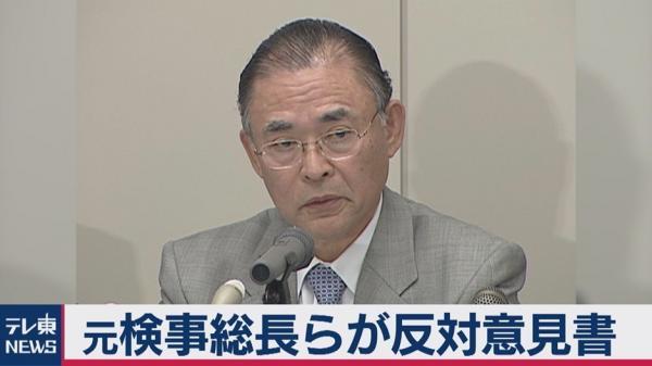 前检事总长松尾邦弘等检察官提出反对书。松尾邦弘在1976年参与过日本前首相田中角荣贪污案件的搜查工作。图片来源:东京电视台
