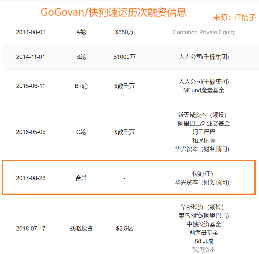满帮由运满满和货车帮合并而来,王刚任董事局主席,滴滴成立之时就获得了王刚 80 万元天使投资,9 月金沙江创投以 300 万美元投进嘀嘀的 A 轮;满帮主要做干线物流,现阶段与滴滴货运直接竞争的概率极小,未来他们可能产生业务协同、甚至与滴滴集团合并。