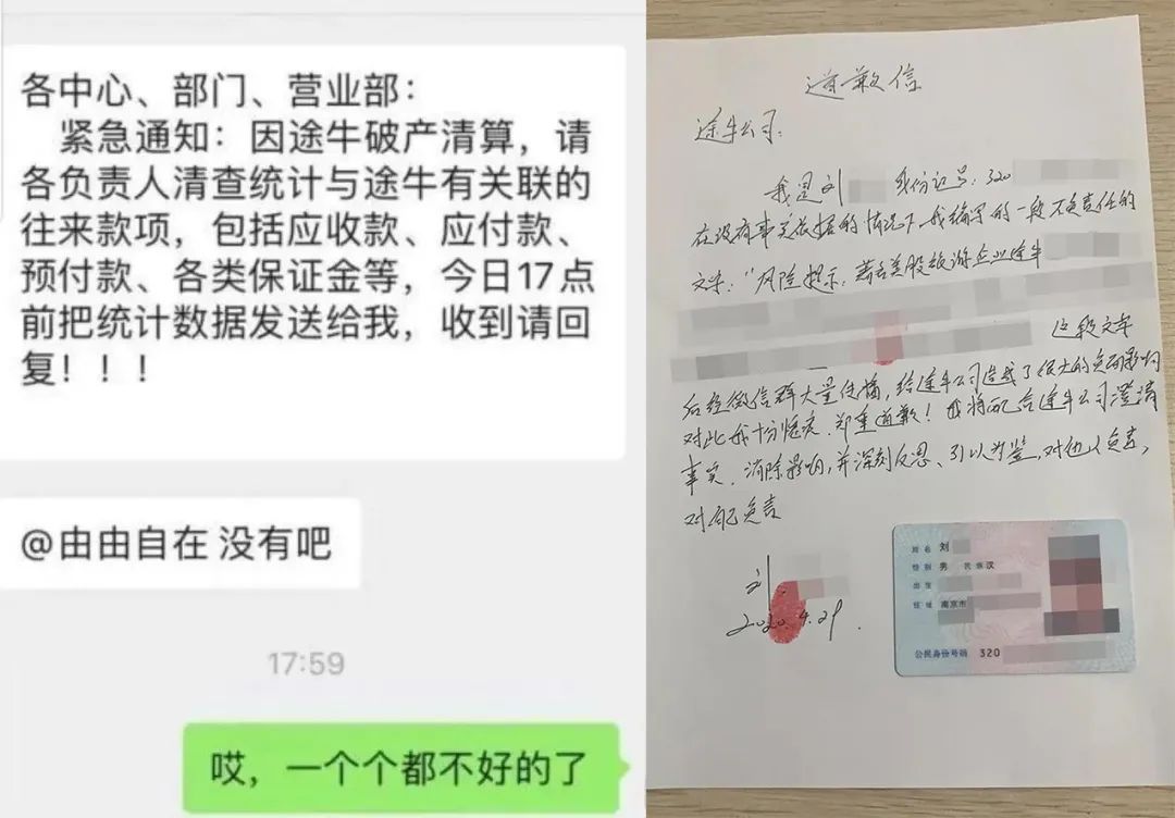 截图显示,因途牛破产清算,请各部门清查与途牛往来款项。彼时正值OTA行业翘首以盼“五一”假期的前夕。1个多小时后,途牛官方回应称,该消息纯属谣言,随后公布了谣言编写者的书面道歉书。