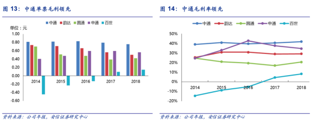 2015 年以来,中通、 韵达通过降价提质实现了市场份额的扩张,2016 年以来,百世也通过低价抢量实现市占率提升,2018年以来,圆通和申通在优化网络后,也开始通过主动降价抢量提升市占率。