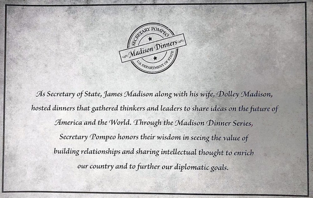 蓬佩奥版“麦迪逊晚宴”:只有14%受邀者来自外交界