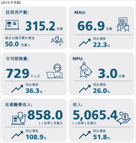 截至2019年底,平安好医生总注册用户数达到3.15亿,年度平均付费用户转化率达到4%,日均咨询量为72.9万,同比增长36.3%。