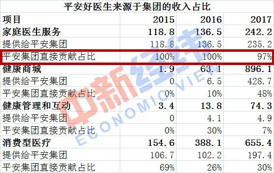 其“家庭医生服务”业务几乎完全是由平安集团采购,前三年直接贡献占比分别达到100%、100%、97%。