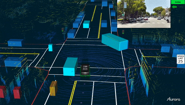 上图:对Aurora的一辆测试车的真实驾驶数据的可视化。