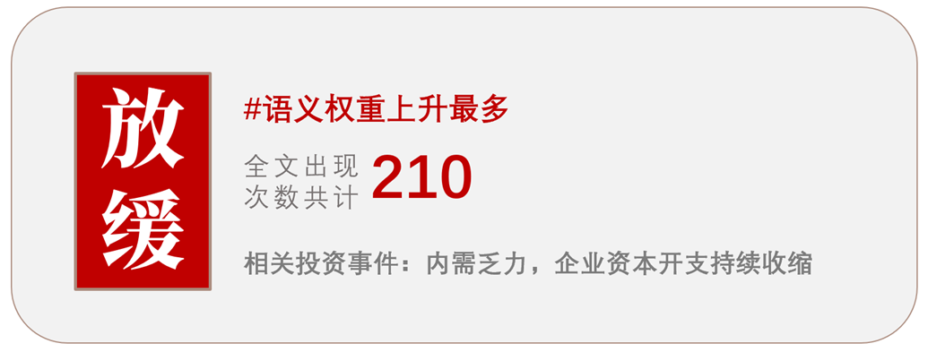 不确定的波动减少固然是好事,但我们也遗憾地看到,确定的“放缓”也成为语义权重上升最多的关键词。