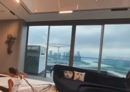 更重要的是,洗米嫂还拥有超大落地窗。从家中看去,远处只有几栋高楼,与高楼衔接的是大海,景色非常宜人,在澳门这种寸土寸金的地方,能拥有这么大的豪宅,可见她资金实力相当雄厚。