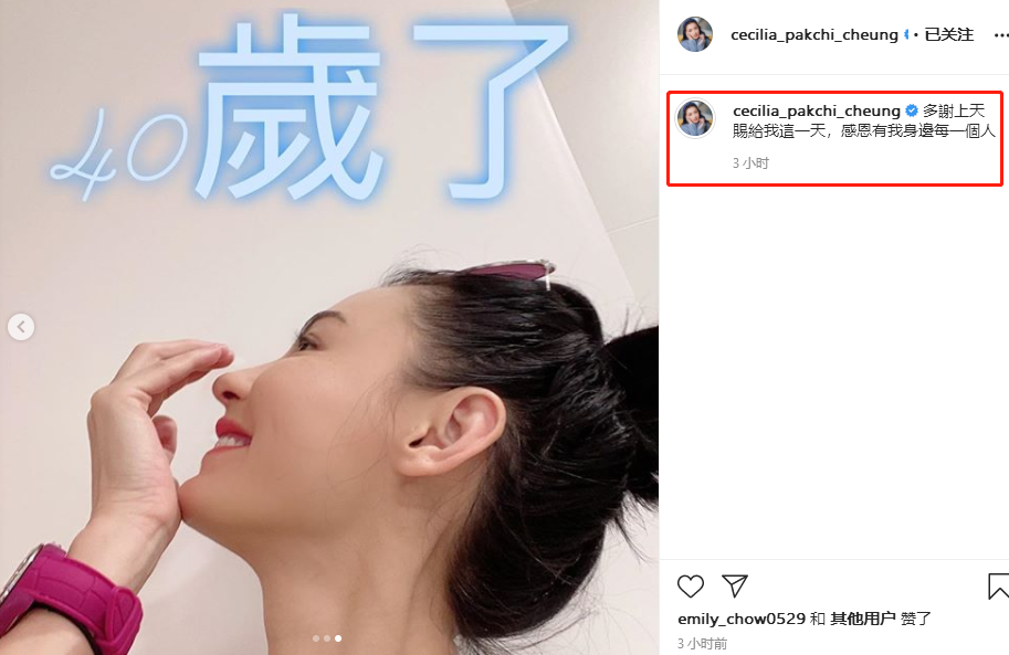 张柏芝配文中写道:40岁了,多谢上天,赐给我这一天,感恩身边每一个人。照片中的她笑容灿烂,完全看不出已经是3个孩子的妈妈,堪称冻龄女神。