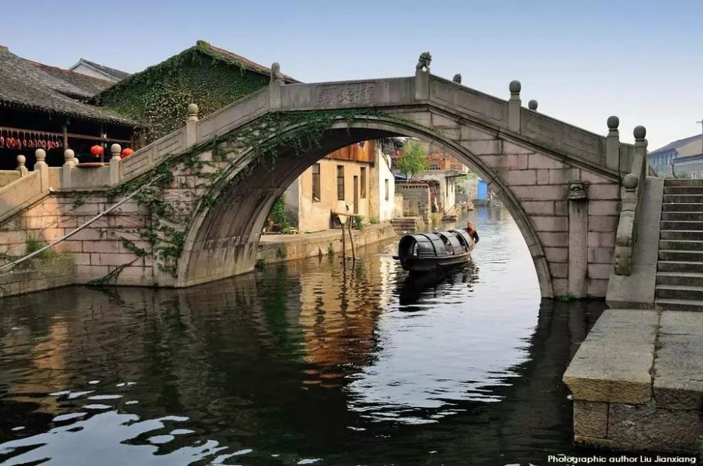 这些桥承载的都是古镇的历史和水乡人的生活,完全就是一幅生活图景,桥下有船流过,很是惬意。