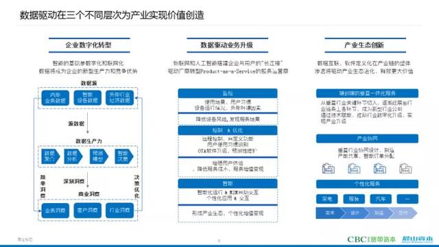 ? 工业领域三大创新方向:企业数字化和联网化;数据资产管理,驱动产能升级;产业生态创新,纵向改造垂直行业产业链不同环节的效率,实现产业上下游信息互联、?效协同。