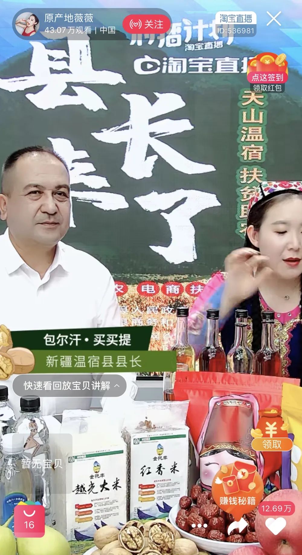 “县长带货”一度成为一个醒目卖点,湖北一位市长直播半个小时,卖出3万斤大米,新疆一位县长直播3小时,促成11万元交易额。