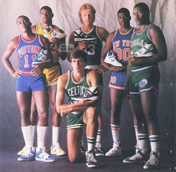 那时全联盟最贵的球鞋合同是天勾贾巴尔的每年10万美金,魔术师约翰逊和大鸟伯徳的代言合同只有大概7万美元。