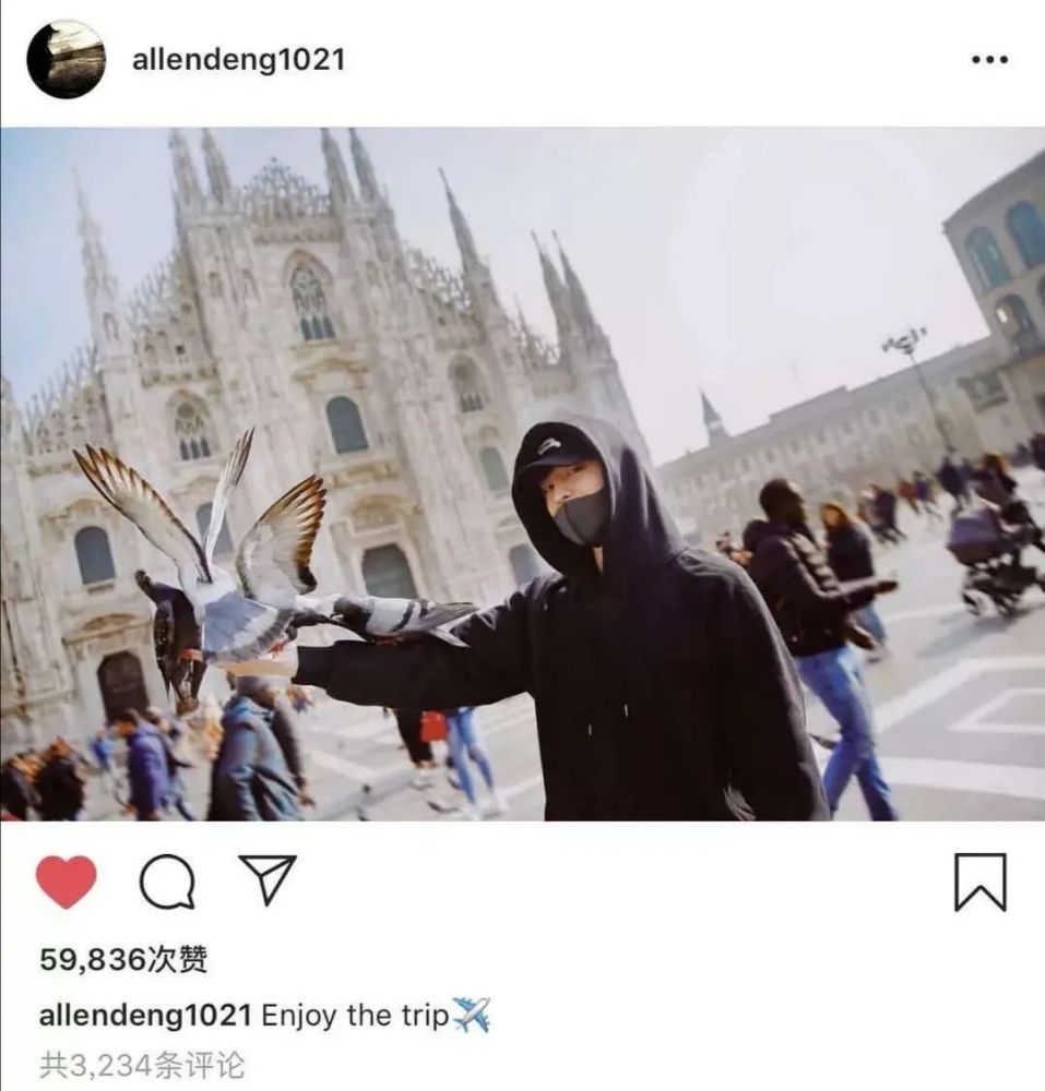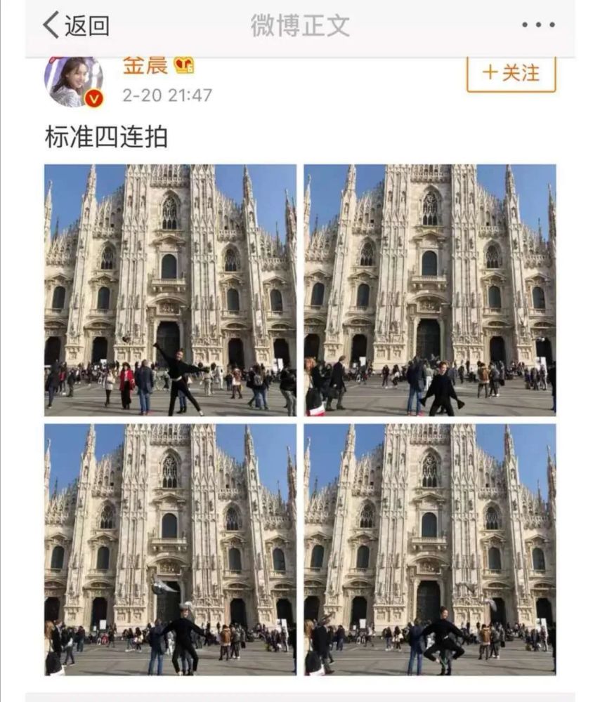 先是两人一前一后上传了米兰同款地点的打卡图。
