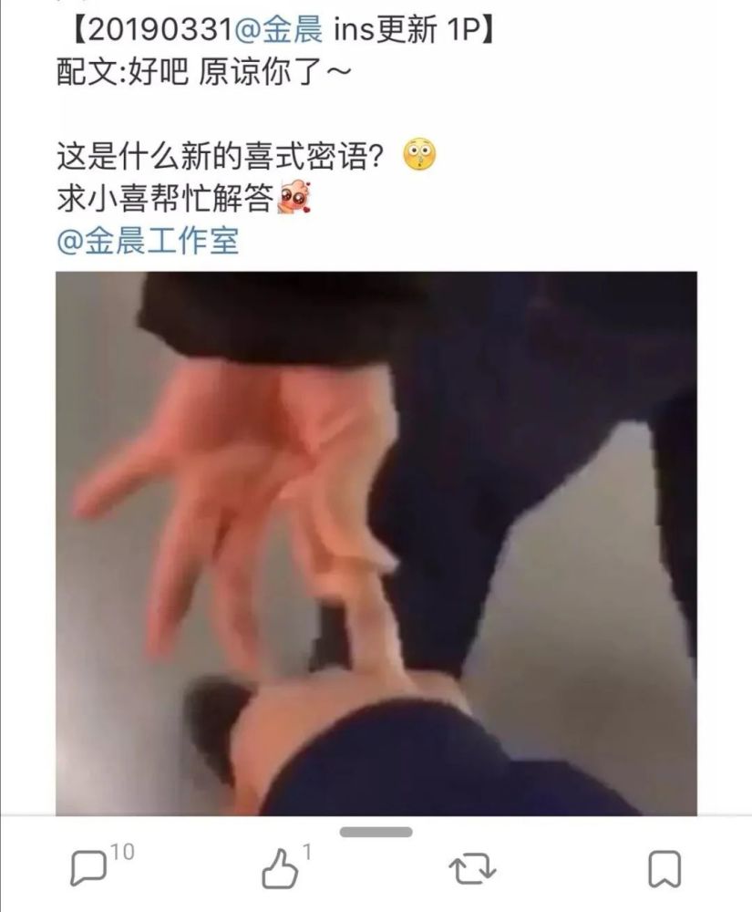 随后金晨在社交网络上更新一则抓着手的图片,并配文:好吧,原谅你了~