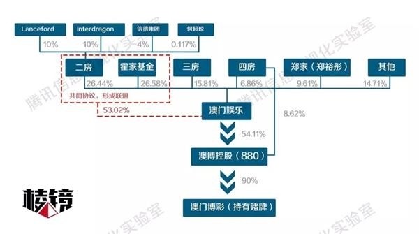 二房在信德集团的持股量,上升到了37.6%,并依旧拥有Lanceford 49.45%的股份。而四房太太梁安琪,出任澳博控股联席主席,是最大单人股东(8.62%),个人直接持有澳娱6.86%的股份。