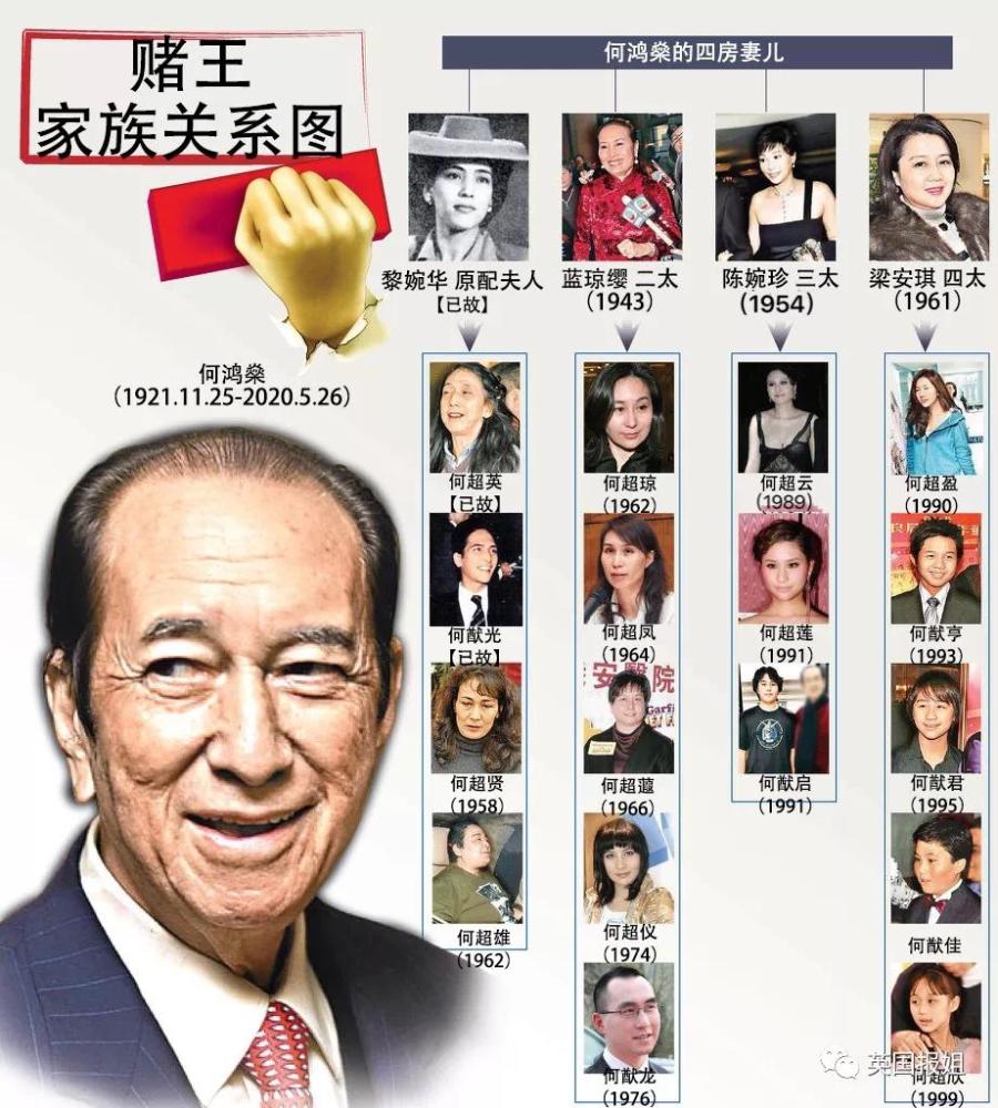 当然了,商战故事和慈善故事永远没有八卦来得令人兴奋。毕竟是站在博彩业巅峰的男人,拥有4房太太和17个子女,5000亿资产等着分割。