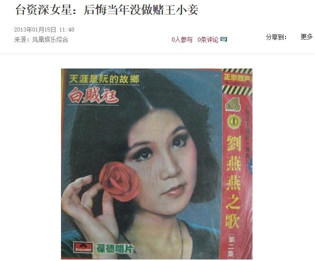 还有一位台湾女星刘燕燕,声称当年经人介绍与赌王认识,何鸿燊还邀请她上游艇,但她看到对方有配偶,就放弃了当小妾的机会……这种“自爆”也没引来何家回应,似乎可信度不高。