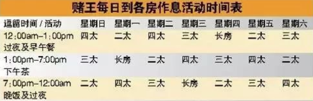看看赌王的每日作息,每天陪哪位太太,都是安排好的: