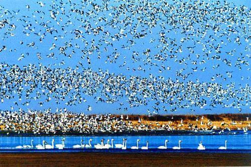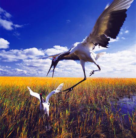 湿地观鸟:野生动物种类繁多,有鸟类270多种,其中国家重点保护鸟类如丹顶鹤、白鹤、白尾海雕、东方白鹤等50多种。水丰林美、鸟鸣鱼跃的景象,非常适合摄影爱好者前往取景。