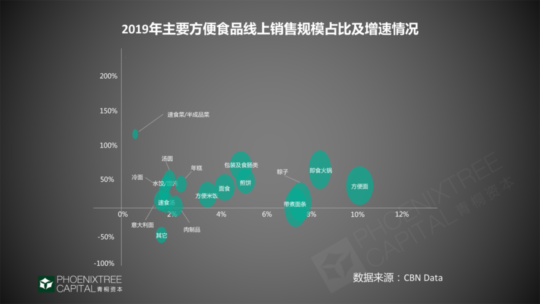 方便食品主要有四大品类:方便面、速冻食品、微波食品、自热食品。其中,自热食品已成后起之秀。据CBNData,2019年方便食品中,即食火锅线上销售规模占比仅次于方便面,但其增速更高。在疫情期间,自热食品销售表现也尤其抢眼。