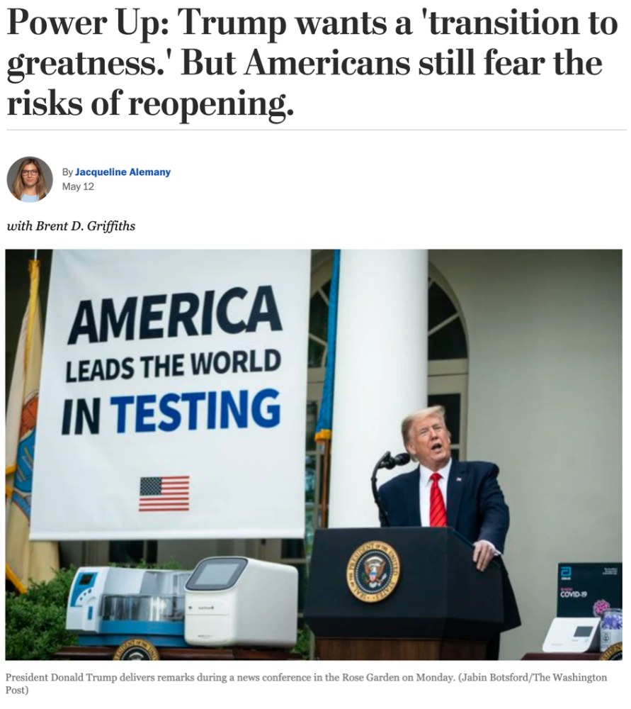 "让美国继续伟大"的口号在此刻实在不相称,你总不能夸口说,我们死亡的数字是全世界最伟大的,对吧?所以,作为市场营销大亨,特朗普最近的宣布就不太意外了。