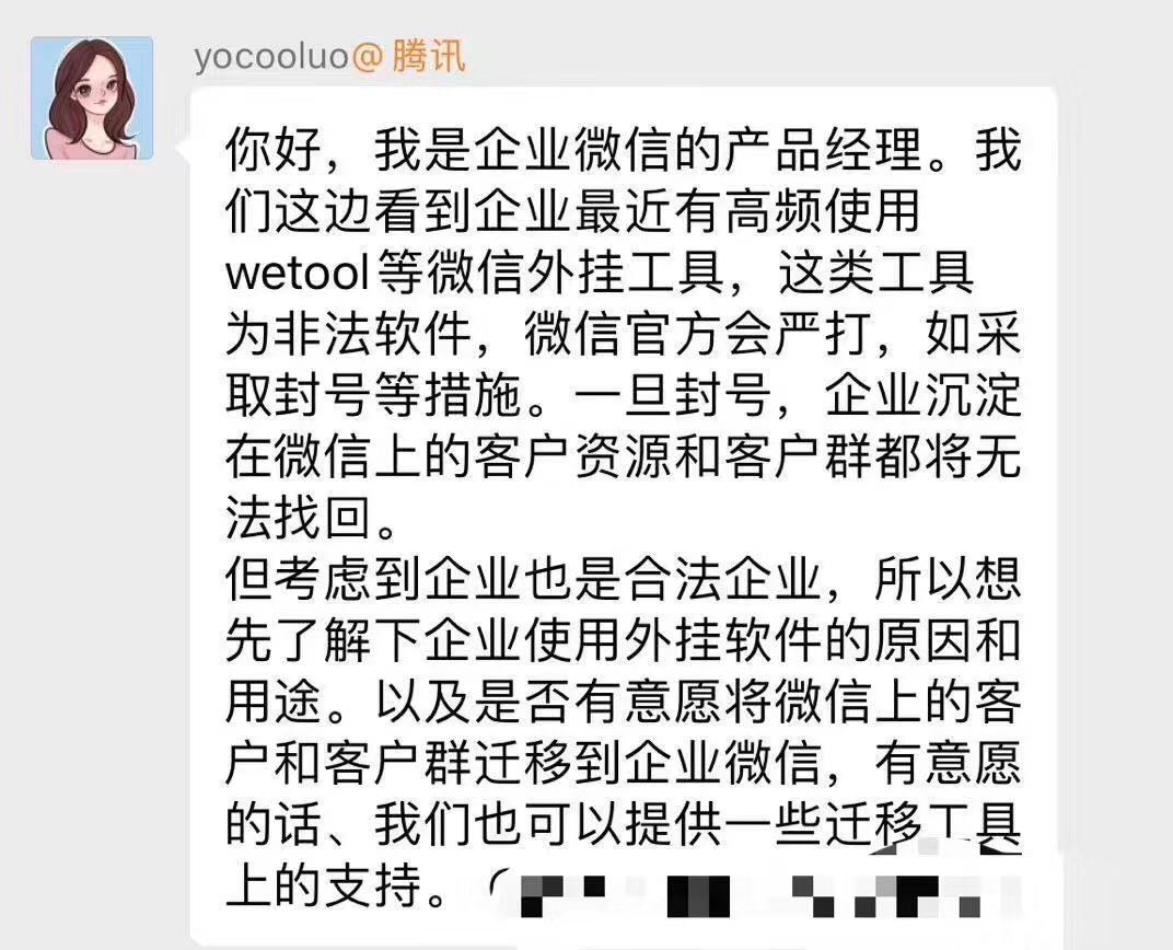 WeTool团队:5月25日晚上8点开始,陆续有用户反馈个人微信号被封。其中,一家在线教育公司是我们的大客户,他们反馈自己老师的个人微信号被封了上百个,我们意识到了事情的严重性。