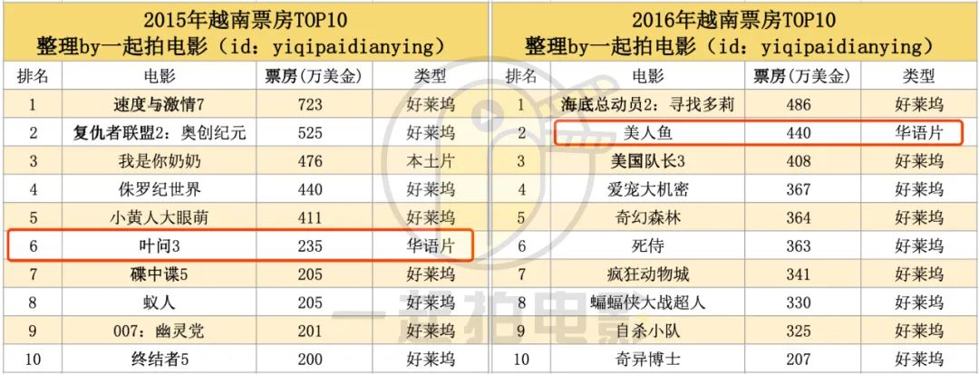 前天刚刚离世的的何鸿燊,他的家族企业也曾经称霸整个东南亚电影市场,在越南拥有数十家影院。2015年《叶问3》、2016年《美人鱼》也都曾冲进越南电影票房榜前十。