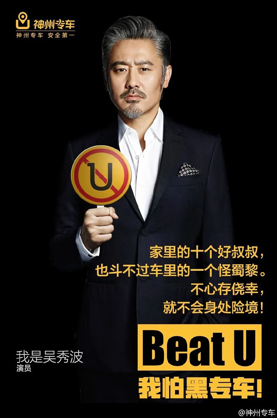 除此之外,神州专车在2015年也运用类似手段碰瓷了对手Uber。神州专车当时拍了一组主题为“BeatU,我怕黑专车”的海报,海报充满了讽刺和指控。