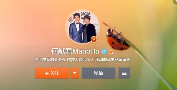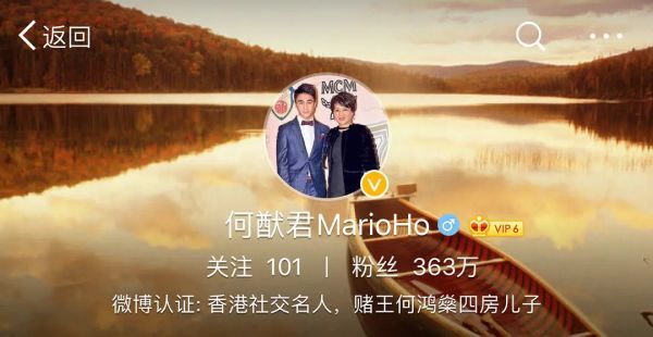 5月29日再度传来了关于何猷君的新动态,那就是在父亲赌王去世之后,儿子何猷君突然改掉了自己的微博认证。