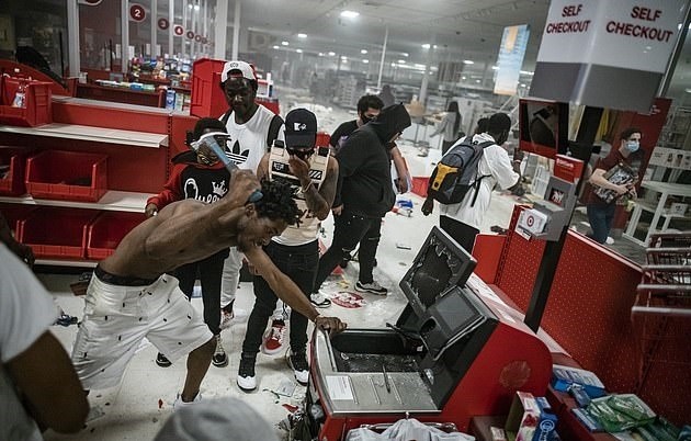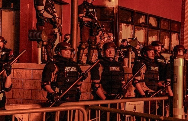 在抗议现场的照片中,州警察挥舞警棍,身穿防弹衣,头戴钢盔,列队对抗暴徒。然而在周四,明尼苏达州州长蒂姆·沃尔兹表示,他们已经耗尽了资源。据悉,许多企业,包括有色人种的企业以及规模较小的店铺,都因为这种非法活动而遭受了损失。