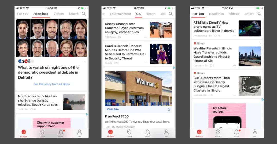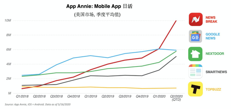 根据 App Annie 数据,其日活(DAU)超过 1100 万,月活超过 2300 万,这些数据超过了《纽约时报》,CNN新闻,《华盛顿邮报》,雅虎新闻和 SmartNews 等主要新闻 App。