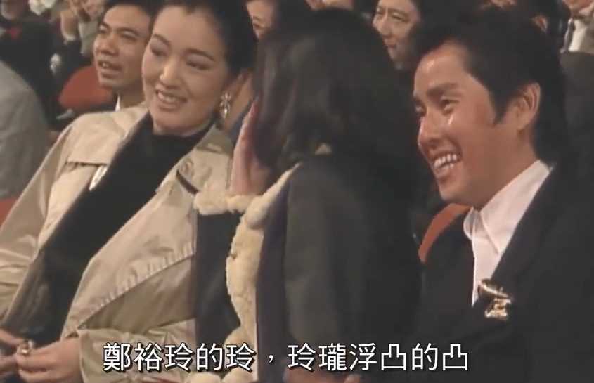 当时台上曾志伟和郑裕玲在用粤语主持并互相开玩笑,巩俐听不懂,梅姑就用普通话给她解释一番,随后两人相视大笑。