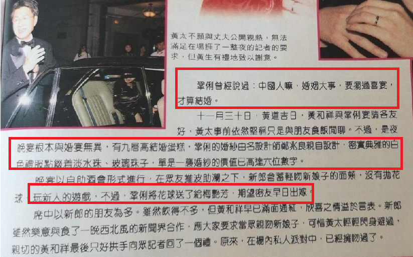1996年2月15日是巩俐人生大喜的日子,那一天她下嫁黄和祥,圈内众好友纷纷出席婚礼道贺。