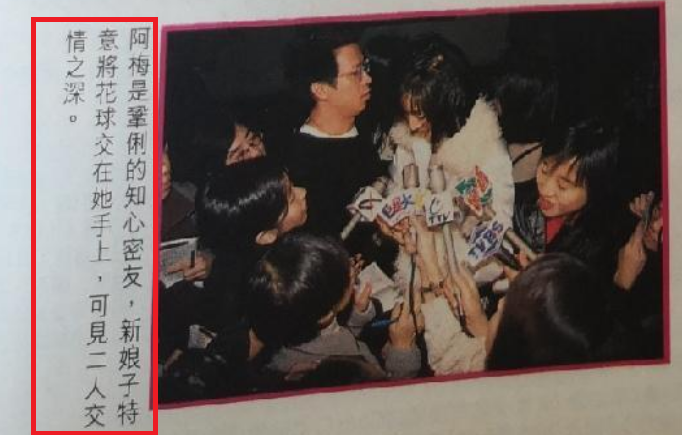 梅艳芳自然也是盛装出席闺蜜婚礼,合影时她笑得比巩俐都欢快,看到好友找到归宿,梅姑羡慕更深深的祝福。