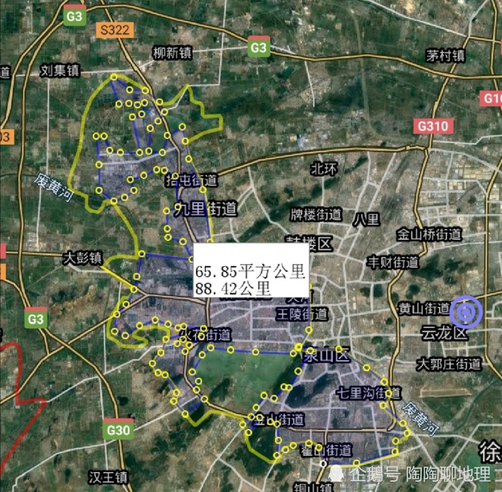 境内拥有徐州高新区,所以它是徐州市的科技、通信、对外贸易中心。实测铜山区建成区面积为47.8平方公里。