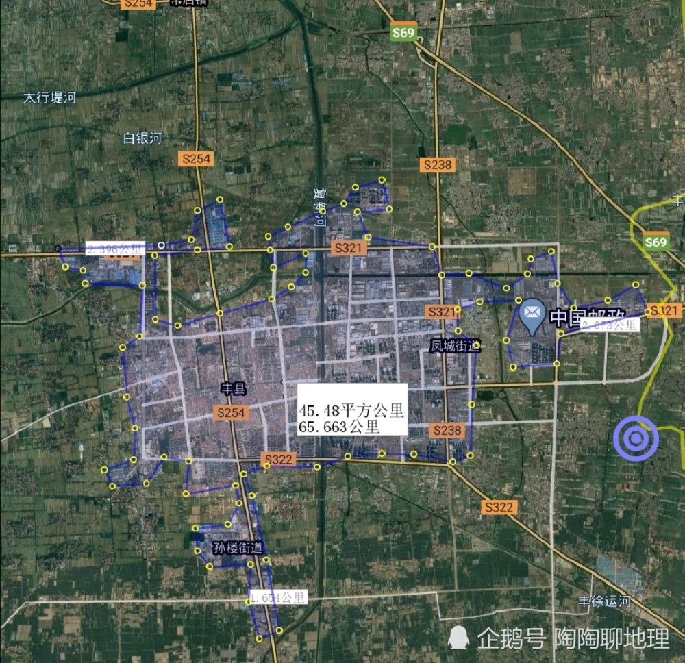 丰县位于徐州市的西北部,和安徽省、山东省接壤,属于三省交界县。实测建成区面积为45.4平方公里。