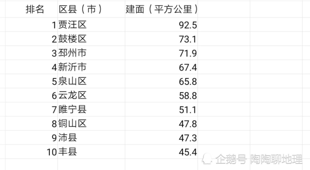 通过测量徐州市各地建成区面积,我们可以得出:贾汪区建成区面积最大,其次是鼓楼区,最小是丰县。