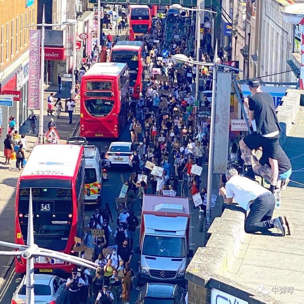 看到一位示威者在社交媒体上贴出视频,上面写着:我现在就在特拉法加广场的抗议中,规模宏大,每个人都单膝跪在地上,我们需要正义!