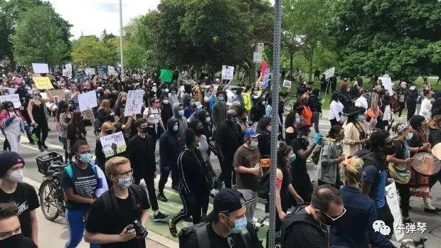 在多伦多,也有几千人在当地警察局前示威,反对针对黑人的种族主义。