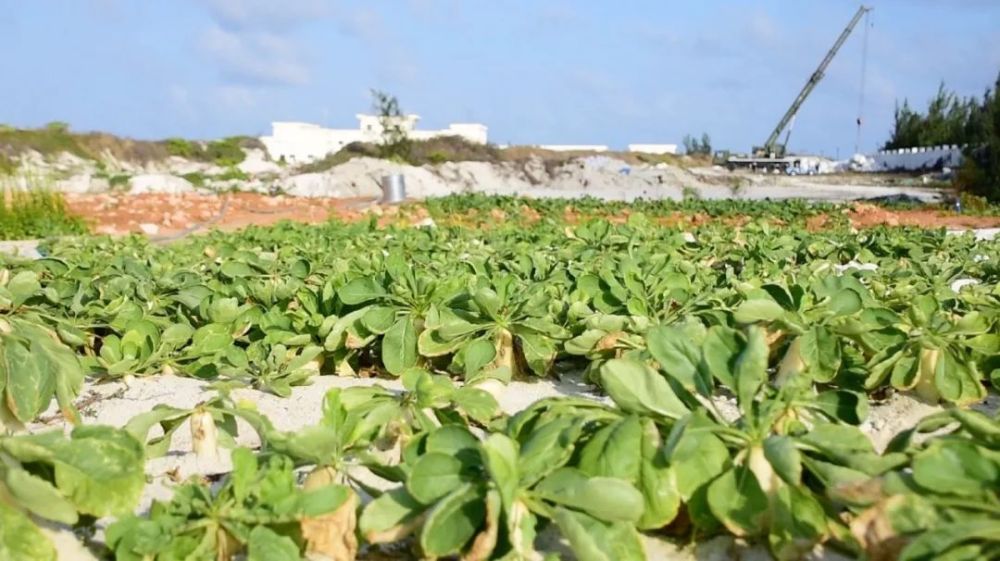 今年年初,海军驻西沙某部联合重庆交通大学“沙变土”科研团队,借鉴沙漠试验田种植经验,经过4个月摸索试验,研制出一种可以和珊瑚沙混合的粉末植物粘合材料,成功将“一盘散沙”改造成适合蔬菜生长的“沃土”。
