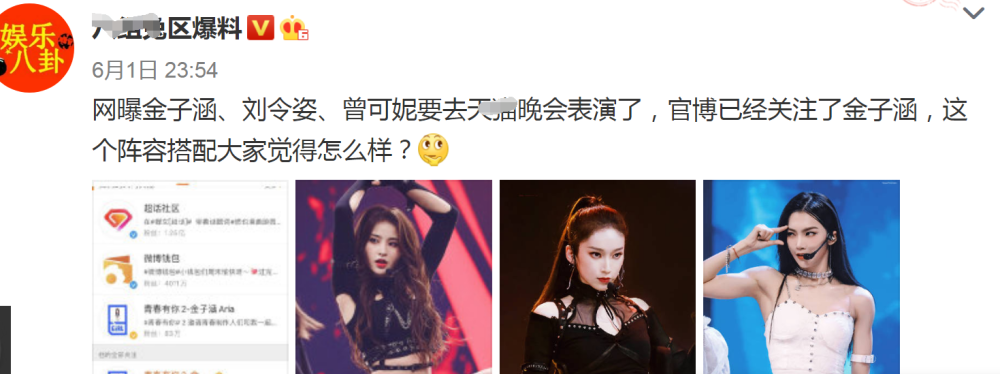 就在大家为刘雨昕、虞书欣纷纷道贺时,没有进入THE NINE九人团的其他成员也传来好消息,有大V曝料称金子涵、刘令姿、曾可妮要上晚会,晚会官博已经关注金子涵了。这个消息真是太劲爆了,大家完全没有想到,没有进入THE NINE九人团成员也能有这么好的资源,这好消息是一个接一个呀。