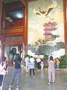 演出厅工作人员告诉记者,每场表演游客量控制在50人以内,现场工作人员将引导不同家庭分散落座。首场演出包括《云舞》《太平盛典》《楚腰》《橘颂》四个节目,生动诠释楚地特有的舞蹈形态和器乐风味。为减少游客停留时间,演出由每天6场调整为每天4场,每场演出的时间由30分钟调整为20分钟,票价由原价50元/人降为30元/人。记者在现场看到,为保证演出效果,演员用面纱代替口罩,不同服装配以不同颜色的面纱,整体效果十分和谐,更增添朦胧美。张女士和儿子看完演出后,一边走出演出厅一边还在讨论舞蹈表演。她说,自己十分喜欢古典文化,看到黄鹤楼恢复常态化开放,特意带着儿子来看。“落梅轩的表演彰显楚地文化和风采,推荐外地游客来看看。”除落梅轩演出厅,黄鹤楼主楼展厅、白云阁展馆、奇石馆展馆、南楼展馆也均恢复开放。记者在主楼一楼大厅看到,不少市民正驻足欣赏《白云黄鹤》壁画,主楼工作人员说,“六一”当天游客量明显增多,且不少都是小朋友。黄鹤楼主楼三楼展厅的壁画前,市民刘先生正为10岁的儿子拍照。听说当天是主楼展厅恢复开放首日,他说:“我们很幸运,室内展厅历史文化丰富,让我们对黄鹤楼的认识更加深入。”