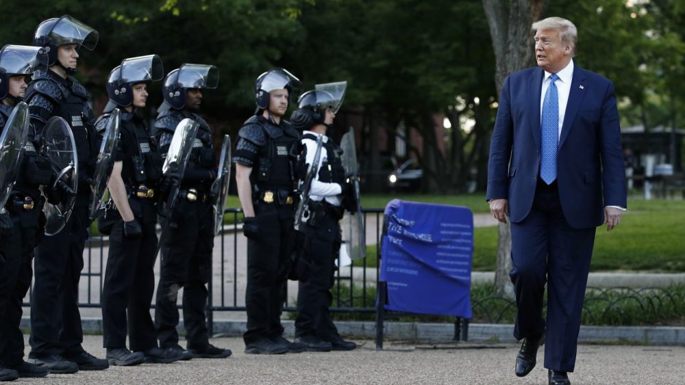 6月1日,美国警察开道后,特朗普前往“总统教堂”。(美联社)