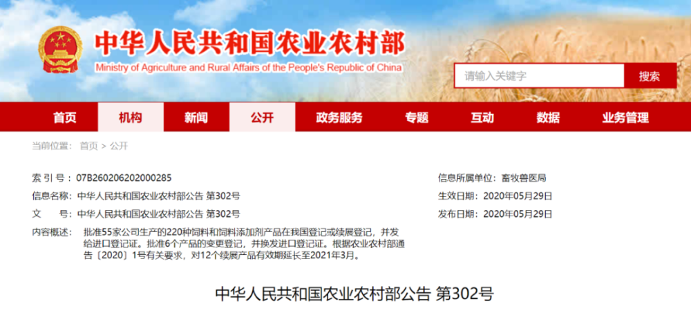 近日农业农村部发布了第302号公告,根据《进口饲料和饲料添加剂登记管理办法》有关规定,批准芬兰杰能科国际有限公司等55家公司生产的220种饲料和饲料添加剂产品在我国登记或续展登记。本次公告新增猫粮59个SKU、狗粮74个SKU,单一饲料3个SKU。